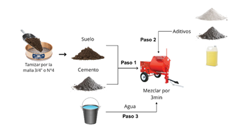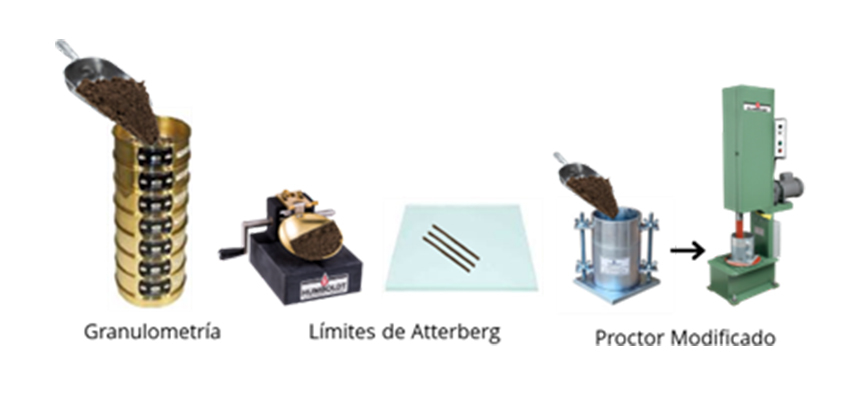 Para validar el efecto de estos aditivos combinados con cemento Viaforte tipo MH, se realizaron diversas pruebas. La metodología se desarrolló en el laboratorio de suelos de Cementos Pacasmayo, utilizando un suelo clasificado como A-2-4(0) según la clasificación AASHTO.