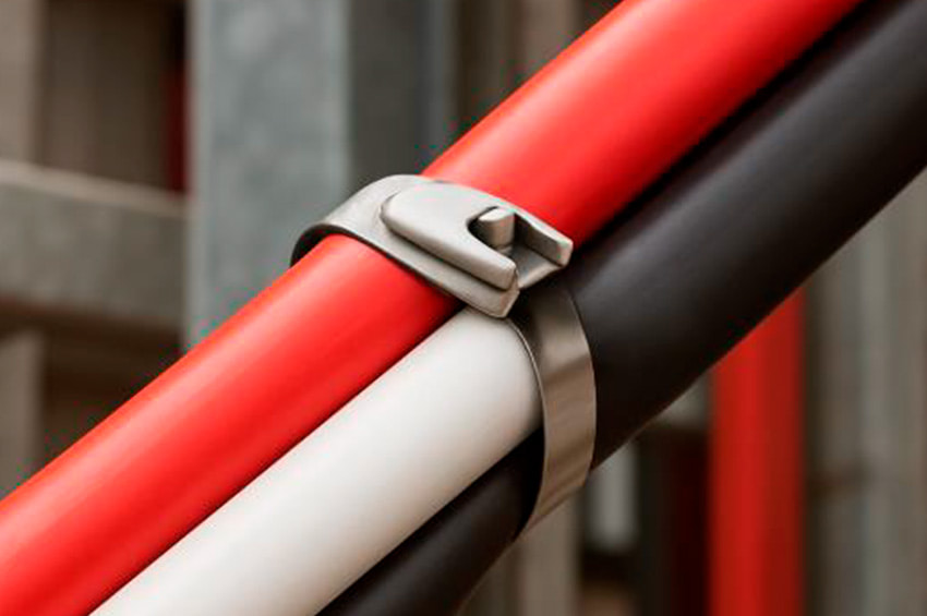 Estas exigencias dejan claro que los amarres plásticos no cumplen los requisitos de ingeniería para aplicaciones verticales en ambientes severos.